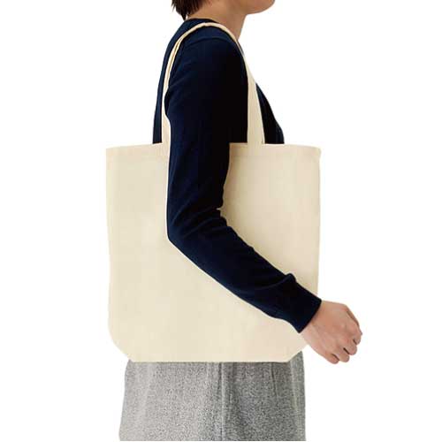 TR-1045 | MARKLESS STYLEオーガニックコットンを使用した船底タイプのバッグです。オーガニックコットンは農薬を使用せずに作られており、地球環境に配慮されたエコな素材となっております。肩掛けができ、A4サイズが収納可能なマチ付のバッグは、定番サイズなので、ノベルティやグッズ販売などエコバッグとしての用途にも選ばれています。