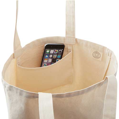TR-1051 | MARKLESS STYLEオーガニックコットンを使用したトートバッグです。オーガニックコットンとは、有機農法で栽培されたコットンのことで、地球にやさしい素材としてさまざまな商品に使用されています。Lサイズのバッグは荷物が多いアウトドアや旅行時に活躍する大容量サイズとなっており、内側には小物が入るポケットが付いています。アパレルブランドやスポーツチームのオリジナルグッズとしておすすめの商品です。