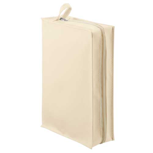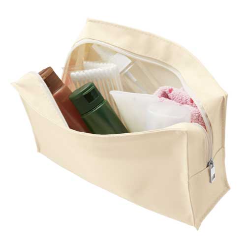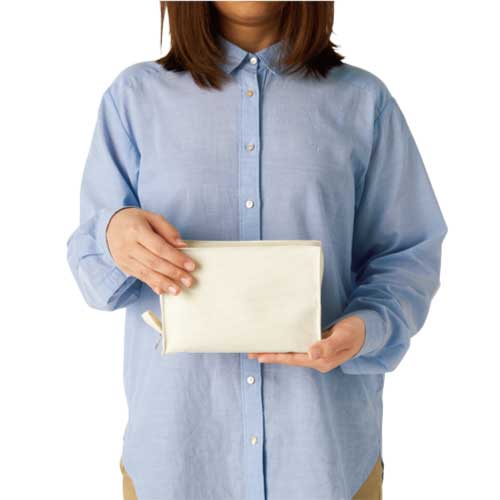 TR-1064 | MARKLESS STYLE厚手のポリエステル生地を使用したスクエアポーチです。横置きはもちろん、縦置きも可能なしっかりと自立する設計になっているため、デスク、カフェやコワーキングスペース、洗面台など、狭いスペースでの使用にも便利です。ループ部分もUの字にすることでフックに掛けやすくするなど、機能性にこだわったアイテムです。カラーは定番のベージュ、ブラック、ネイビーの3色展開となっており、コスメポーチやトラベルポーチとして男女問わずお使い頂けます。アパレルブランドのオリジナルグッズや、ライブグッズなどにもおすすめです。