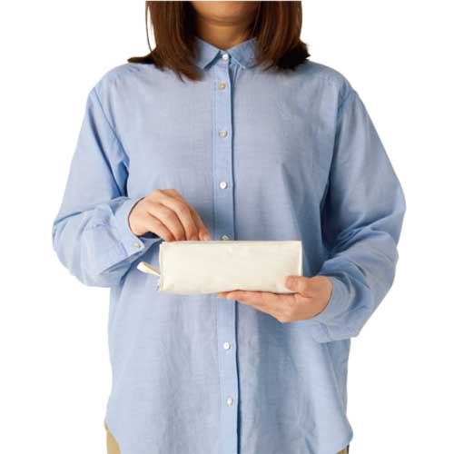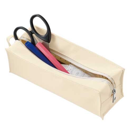 TR-1065 | MARKLESS STYLE厚手のポリエステル生地を使用したスクエアポーチです。横置きはもちろん、縦置きも可能なしっかりと自立する設計になっているため、デスク、カフェやコワーキングスペース、洗面台など、狭いスペースでの使用にも便利です。ループ部分もUの字にすることでフックに掛けやすくするなど、機能性にこだわったアイテムです。カラーは定番のベージュ、ブラック、ネイビーの3色展開となっており、ペンケースや眼鏡ケースとして男女問わずお使い頂けます。塾などの入会記念品や、卒業記念品などにおすすめです。