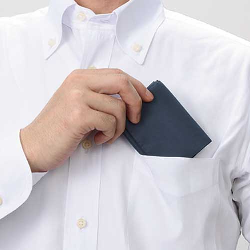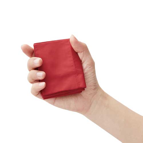 TR-1097 | MARKLESS STYLE簡単にカードサイズ相当まで折りたたむことができるポケットスクエアバッグです。 シンプルなデザイン、かつシャツの胸ポケットにも入るコンパクト設計なので、今まで使用してこなかった男性でも使いやすいアイテムとなっております。 持ち手部分が大きくなり、男性の手でも持ちやすいサイズになりました。 レジ袋と同じガゼットマチ仕様のためマチも広く、コンビニのお弁当も入ります。
