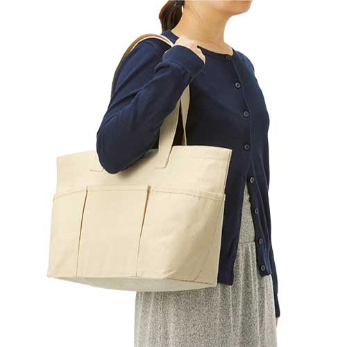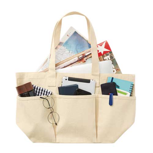 TR-1111 | MARKLESS STYLEコットンを使用した大容量のトートバッグ。裏表に合計6つのポケットがついているので、小物も入れやすく使いやすいのがポイントです。お買い物バッグやノベルティ利用だけでなく、ライブグッズなどの物販品としてもおすすめ商品です。