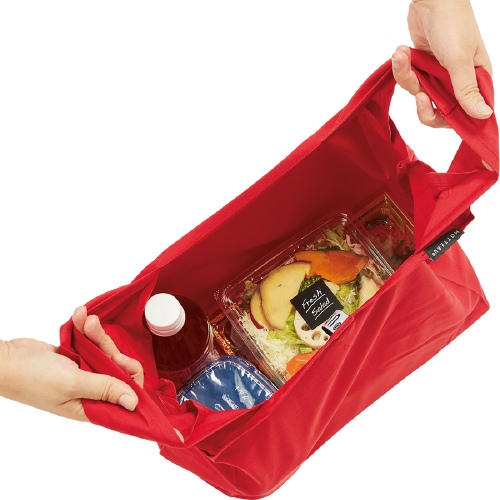 TR-1124 | MARKLESS STYLE「幅広いマチでお弁当が安定」「お弁当と飲み物が入る大きさ」「開口部が広くて取り出しやすい」というランチに便利な3つの特徴を備えたバッグです。 お弁当を平らに収納でき、開口部も広く取り出しやすい設計は日々のお買い物に重宝します。 シワになりにくく洗濯可能な生地ですので清潔に繰り返し使用が可能! キャンペーンのノベルティやポイント交換の記念品としてもらって嬉しい商品です。