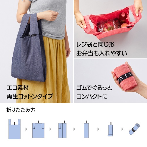 TR-1122 | MARKLESS STYLE大人気の「クルリトシリーズ」の再生コットンデイリーバッグ。 生産中に生まれた生地の端切れを粉砕、再度撚って作ったのが再生コットン糸で、廃棄を生み出さない点に加え、既に色が付いた綿くずから作るので染色する必要もなく、 CO2 の削減・水の節約にもなる環境に優しい素材です。 販売ポイントにもなります。おしゃれなサブバッグとして重宝される淡い色合いで、女性向け商品としておすすめです。
