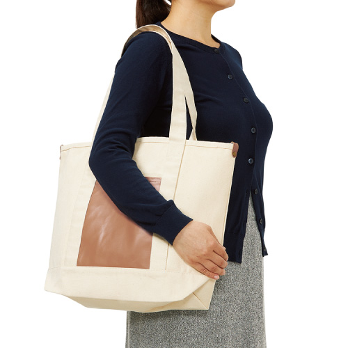 TR-1149持ち手部分にレザーを使用することで、高級感を持たせたレザートートバッグ。キャンバス地とレザーの組み合わせが、より高級感を際立たせます。レザーは本革(牛)を使用しており、丈夫なのは勿論のこと、スクエア型で大容量なので、デイリー使いにもお勧めです。レザーの部分は、使う度に手に馴染み、あなたにフィットしていきます。使用頻度が増すごとに、あなただけの特別なバッグに変化していくことでしょう。このバッグを手に入れて、今までと違う毎日の日常を味わってみませんか。