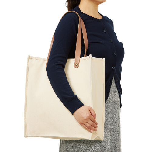TR-1150 | MARKLESS STYLE持ち手部分にレザーを使用することで、高級感を持たせたレザートートバッグ。キャンバス地とレザーの組み合わせが、より高級感を際立たせます。レザーは本革(牛)を使用しており、丈夫なのは勿論のこと、スクエア型で大容量なので、デイリー使いにもお勧めです。レザーの部分は、使う度に手に馴染み、あなたにフィットしていきます。使用頻度が増すごとに、あなただけの特別なバッグに変化していくことでしょう。このバッグを手に入れて、今までと違う毎日の日常を味わってみませんか。