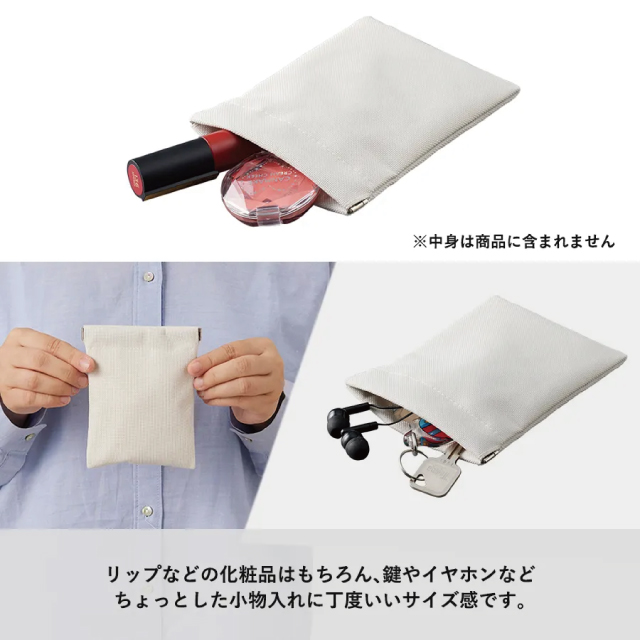 TR-1164 | MARKLESS STYLE片手でパカっと開きやすい「バネ口」タイプのミニポーチ。ポーチ特有のチャックや紐がないから、使いたい時にすぐに取り出せるのがいいですね。リップや化粧道具はもちろん、鍵やイヤホンなどの小物をいれるのにピッタリです。カラー展開も普段使いしやすいナチュラルなカラーだから、使用シーンを選ばないのも嬉しいポイント。あなたも一度この商品を手にいれたら、この便利さに驚いて虜になってしまうかも?