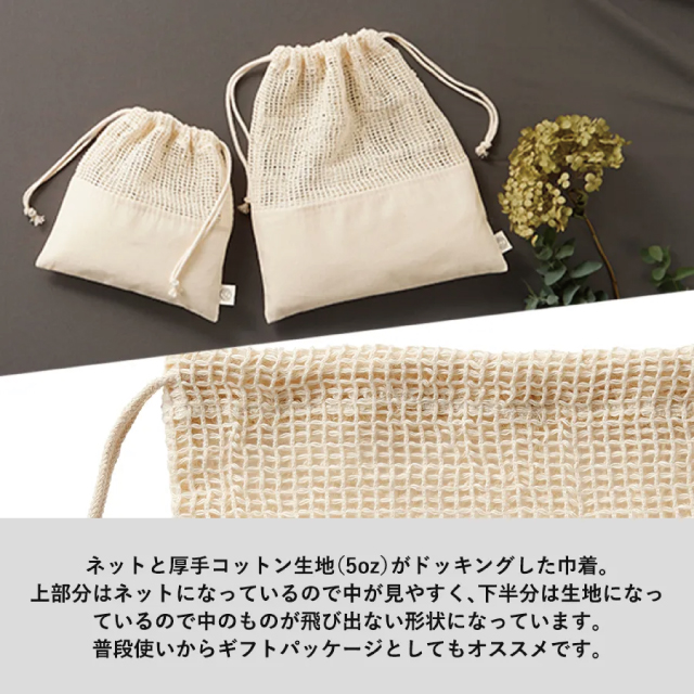 オーガニックコットン網目巾着(L)