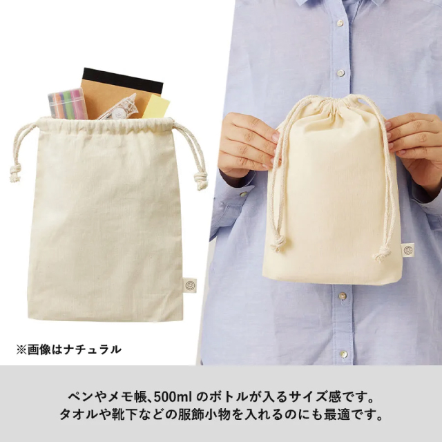 オーガニックコットンマチ付き巾着(M)