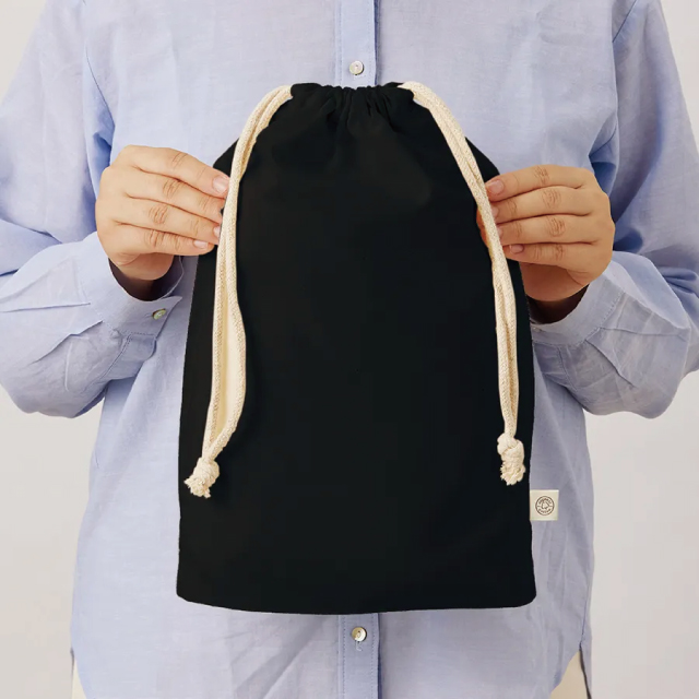 TR-1170 | MARKLESS STYLE地球に優しい素材で作られたオーガニックコットンを使用した、マチ付きの巾着です。Tシャツなどが入る少し大き目のサイズ感で、物を入れても形が綺麗に保たれるのはマチ付きだからこそ!厚みのある物も気にせずに収納できますね。何と言っても、本体から紐まで全てオーガニックコットン素材で作られたこだわりの商品なので、企業様のSDGs活動やイメージアップにも一役買ってくれることでしょう。カラーも対照的なナチュラルとブラックをご用意致しました。あなたはどちらを選びますか。