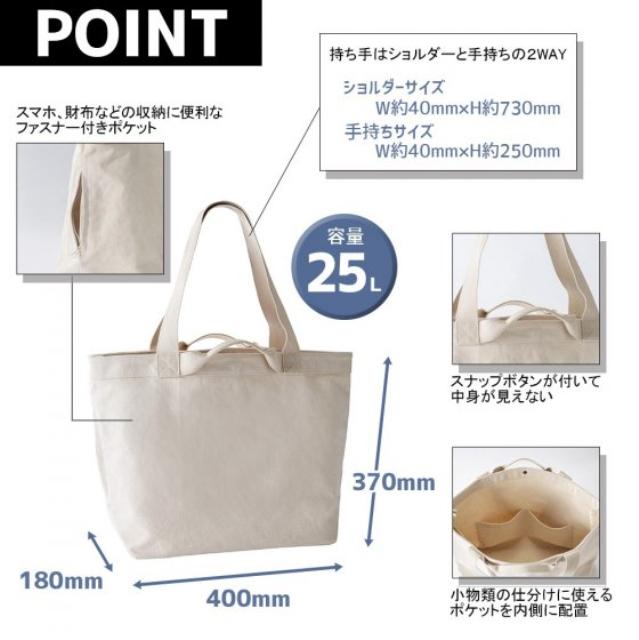 MA9022 | LIFEMAX厚手のキャンバス生地を使用したビッグサイズのトートバッグです。厚手で25Lの大容量なので収納、耐久性に優れています。持ち手は肩掛けと手持ちの両方使えて便利。外側にスマホ、財布などの収納に便利なファスナー付きポケット、内側に小物類の仕分けに使えるポケットがあり機能面も充実しています。ちょっとした外出や買い物、小旅行まで活用できる多機能トートバッグです。
