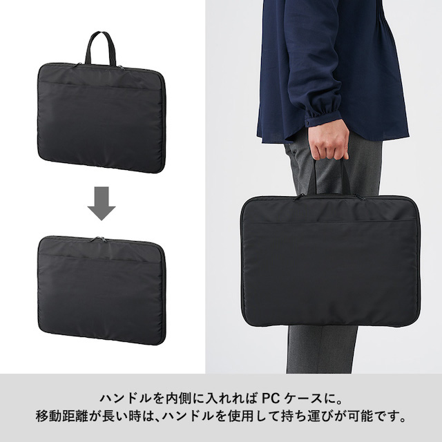 TS-1838 | MARKLESS STYLEビジネスシーンにぴったりのノートパソコンバッグです。13.3インチまでのノートパソコンを収納でき、使うときはバッグから取り出す必要なく、入れたまま使用することができます。ポケットが内側と外側の両方についているので、マウスや充電ケーブルなどの周辺機器や、メモ帳やペンの収納に便利です。使いやすい4色を展開しているので、会社やショップのロゴ等に合わせてお選びください。
