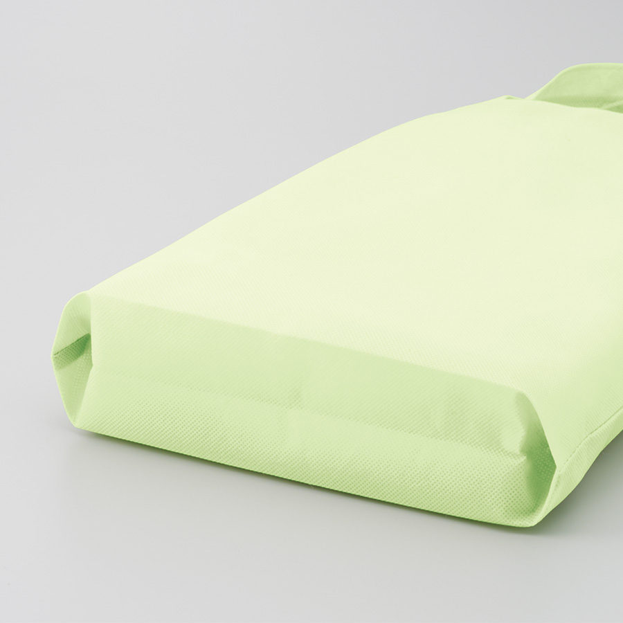 TR-1340 | MARKLESS STYLEA4サイズが収納できる、手提げタイプの不織布バッグ。底部分はマチを広げることができるので、薄めのチラシから厚みのあるパンフレットまで中身にばっちりフィットします。マチを折り込むことでコンパクトに畳むことができ、持ち運びにも便利です。豊富なカラー展開なので、学校様や企業様のイメージカラーに合わせて作成できます。