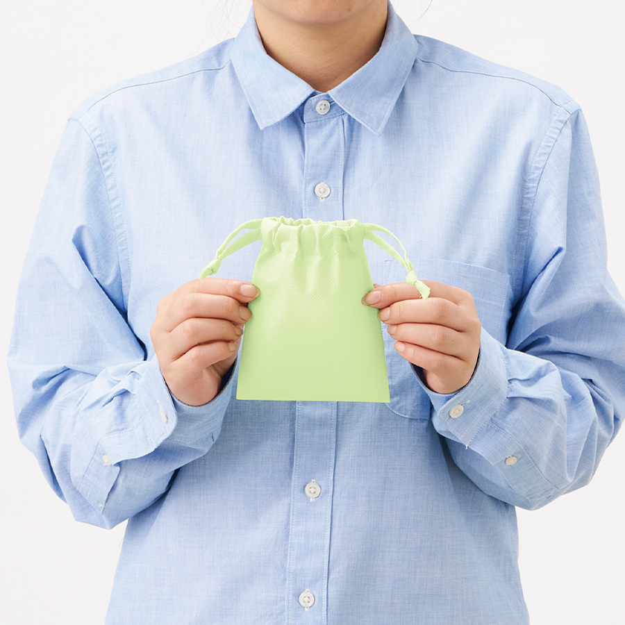 TP-0003 | MARKLESS STYLEこちらのシリーズは、豊富なカラーとサイズ展開なので、イベントや施設のテーマカラー、ご使用用途に合わせて自由に選択できます。SSサイズのミニ巾着は、小物を入れるのに最適なので、お店のノベルティーやギフト用のラッピング・パッケージ、イベントのおまけ等、様々な場面で活躍します。 また、水に強く通気性もあり、なおかつ持ち運びに便利な不織布の巾着は、ホテルや旅館、エステサロン等でのアメニティーグッズの袋にも最適です。