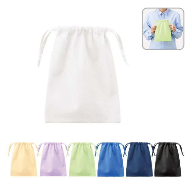 TP-0005 | MARKLESS STYLEこちらのシリーズは、豊富なカラーとサイズ展開なので、イベントや施設のテーマカラー、ご使用用途に合わせて自由に選択できます。Mサイズのミニ巾着は、小物を入れるのに最適なので、お店のノベルティーやギフト用のラッピング・パッケージ、イベントのおまけ等、様々な場面で活躍します。 また、水に強く通気性もあり、なおかつ持ち運びに便利な不織布の巾着は、ホテルや旅館、エステサロン等でのアメニティーグッズの袋にも最適です。フルカラー印刷ができるので、オリジナルロゴを入れたお店のギフト用袋などにもご活用いただけます。