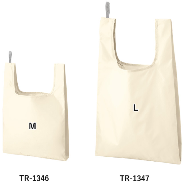 TR-1346 | MARKLESS STYLE上質な光沢感としなやかでさらっとした手触りが特徴の、ファインライトポリエステルを使用したマルシェバッグです。超薄手で持っていることを忘れるほどの超軽量、重さはなんと単三乾電池(約23g)程度!ゴムで止めていただくことで極小の手のひらサイズになるので、持ち運びにとっても便利。M・L(品番:TR-1347)の2サイズ展開で、Mサイズはお弁当などを入れるのにちょうど良く、ちょっとしたお買い物にもおすすめです。イベント配布用やノベルティにいかがですか。