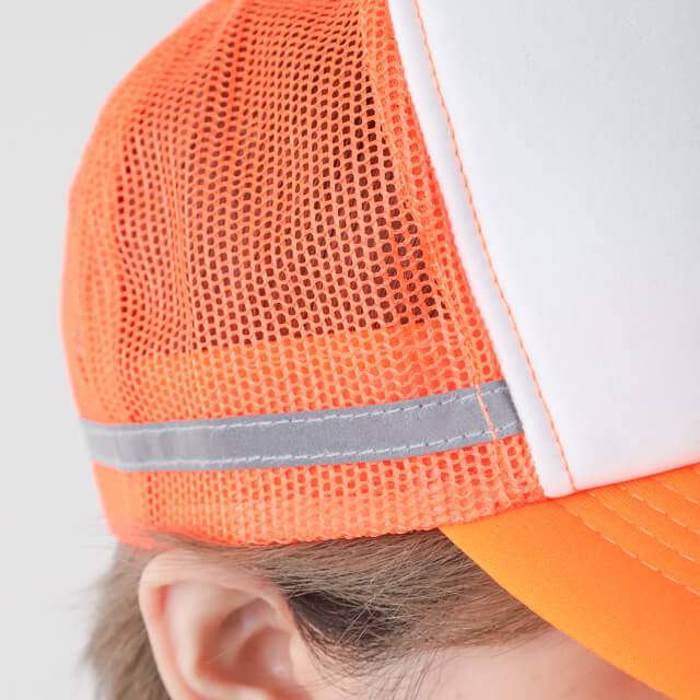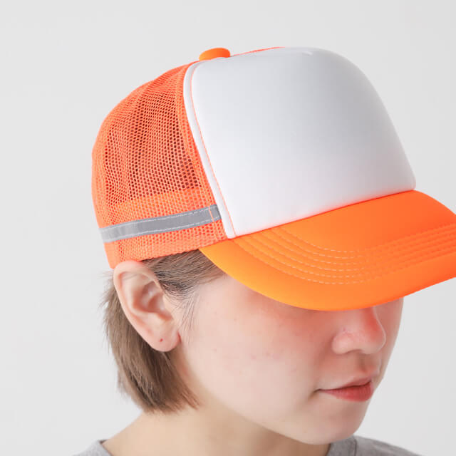NC-AM | POINTSKYWARD鮮やかな蛍光色と両サイドに施された反射テープがひと際目立つので、昼夜問わず屋外の活動時にも大変便利で安心なメッシュキャップです。背面部分がメッシュ素材になっているので通気性も抜群!夜間の屋外活動やお仕事の際にも危険から守ってくれる、お守りのような帽子です。