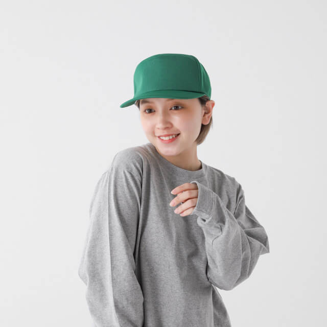 正面に縫い目のないキャップは、刺しゅうやプリントが映えること間違いなし!野外イベントやキャンプのお供に