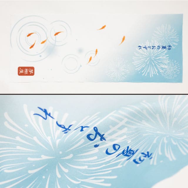 急ぎでも安心!最短翌日発送でお届け可能な「手ぬぐい」が登場。 手ぬぐいは、独特の肌触りや通気性の良さでタオルとは違った魅力があります。 細い糸で繊細に織られており、なめらかな風合いに加えて、染色の発色も美しく、グラデーションや風景、人物写真などの細かなデザイン表現も可能です。 本製品は「全面プリント対応」のため、端まで自由にデザインを施すことができます。また、両端が切りっぱなしになっているため、通気性がよく、水分を吸ってもすぐに乾きます。湿気がこもりにくいので、雑菌やカビも発生しにくく、清潔にお使いいただけます。