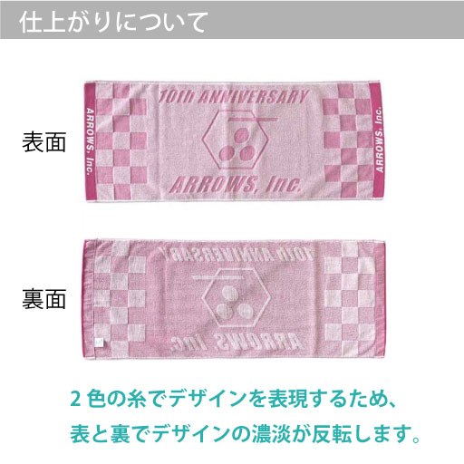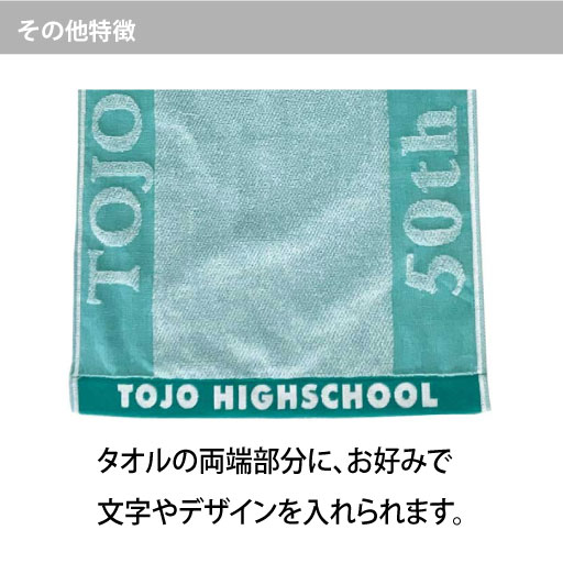 スポーツチームの応援用や記念品として、お揃いのタオル作製がおすすめです。ホワイトとカラーの糸で織り込むため淡い色合いが特長です。プリント加工とは一味違う高級感と上品さのある仕上がりです。短納期でお届け可能なのも魅力。30枚~ご注文可能な商品となります。