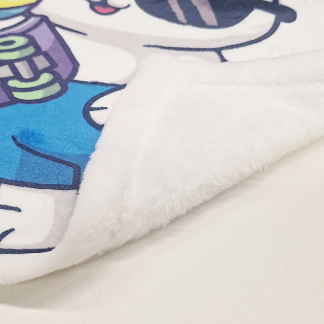 MARKLESS STYLEオリジナルブランケットを最短翌日発送でお届けします! 表も裏もふわふわの素材で、柔らかな肌触りと高い保温性が特徴です。 表裏共に毛足が長く、プリント面の手触りが良いことから日常使いにとても適しています。 企業ロゴを入れた周年記念グッズや販売用のキャラクターグッズ等でご使用いただけます。 ひざ掛けにぴったりなSサイズと、太ももから足元まで覆うサイズ感で肩に羽織ることもできるMサイズの2種類をご用意しています。